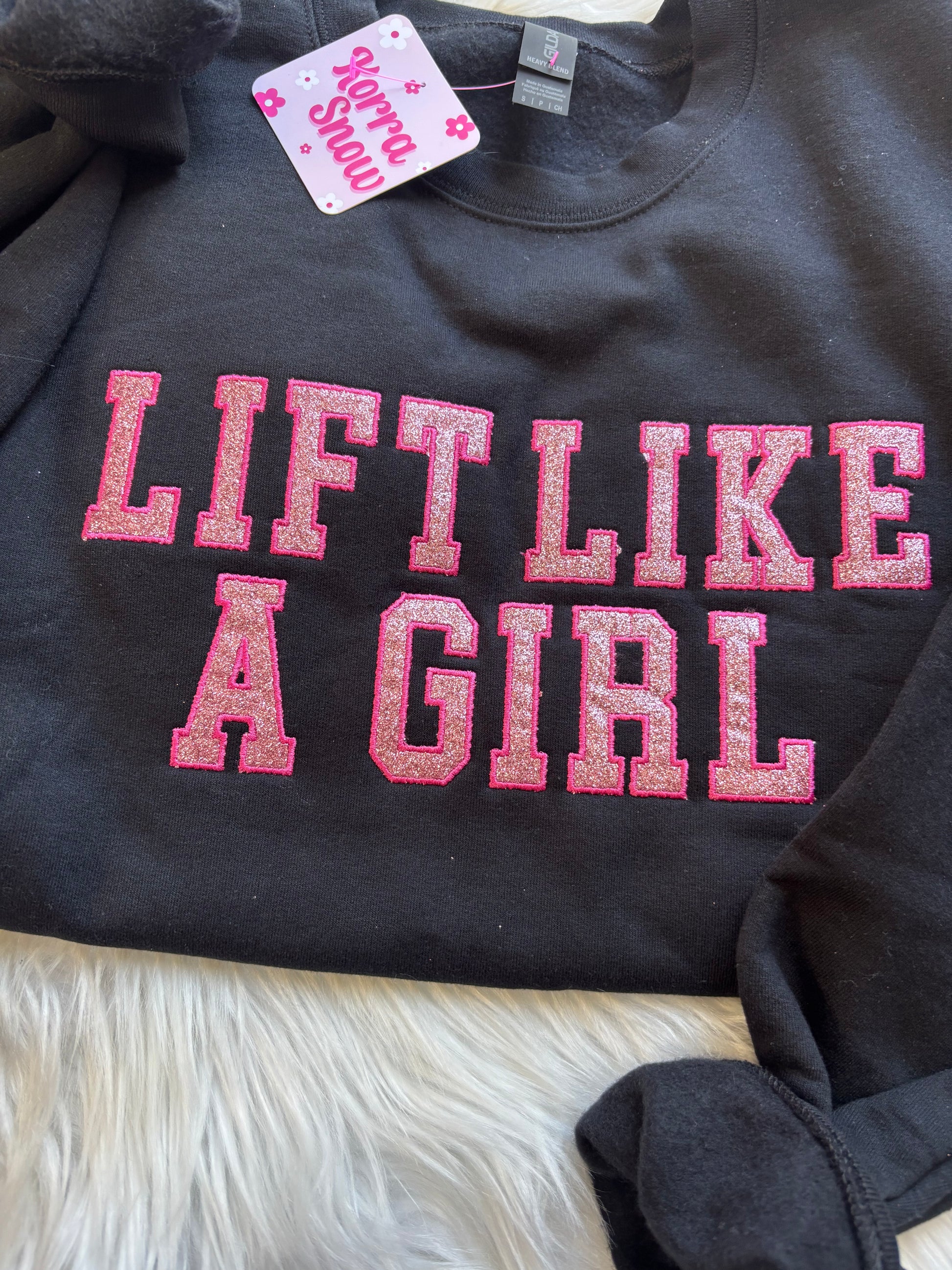 LIFT LIKE A GIRL EMBROIDERED GLITTER CREWNECK